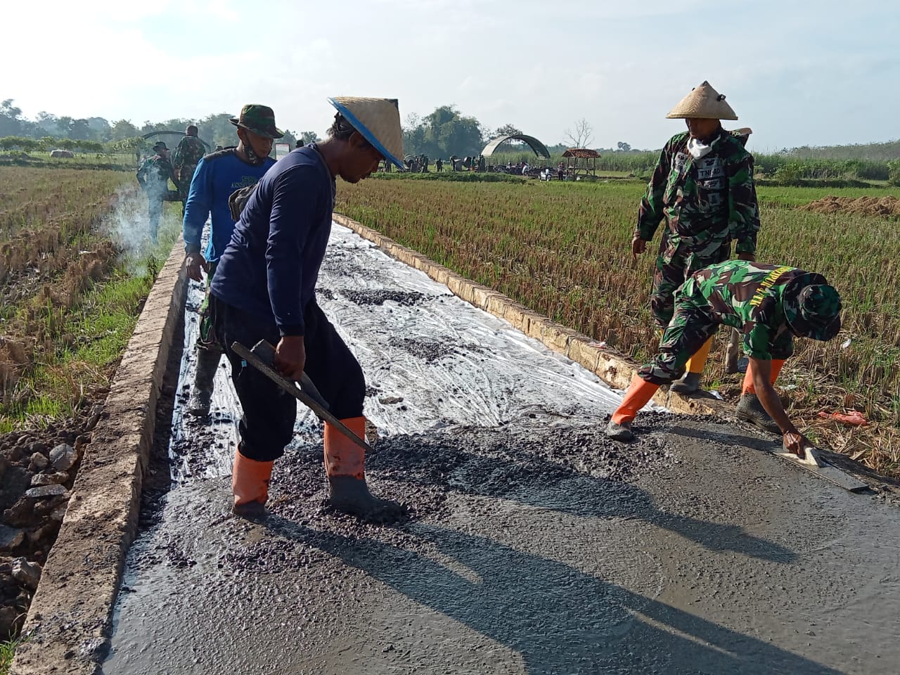 Dalam proses pembangunan jalan beton tersebut, sudah terjadi pembagian tugas dan peran masing-masing perorangan agar tidak terjadi kerumunan penumpukan personel, sehingga efektif kerja.