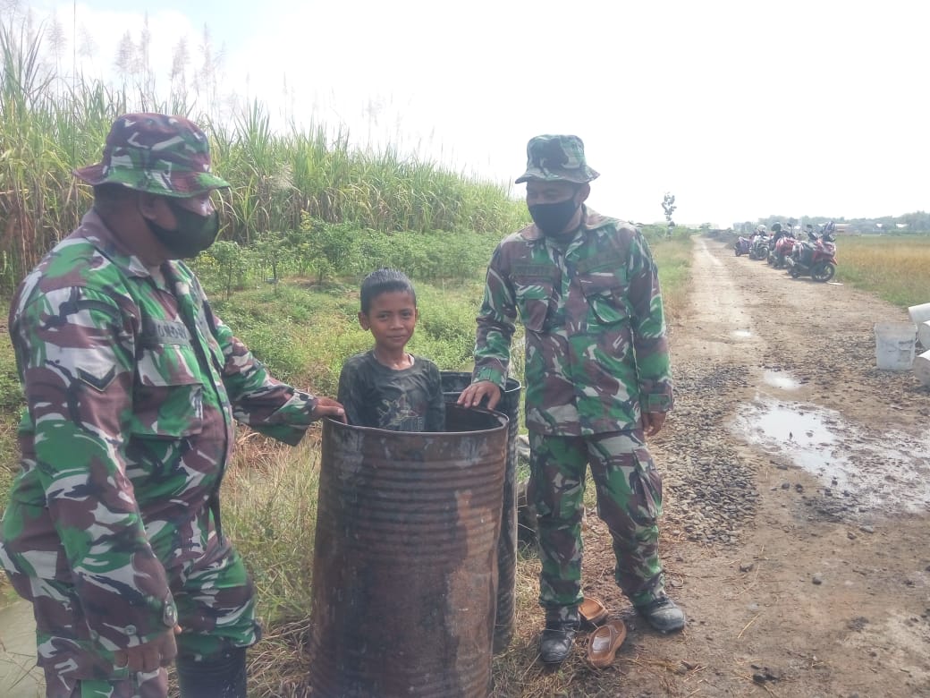 PATI – Di sela-sela tugas menjadi anggota Satgas TMMD ke-111 Kodim 0718/Pati, upaya untuk mewujudkan kemanunggalan dengan masyarakat juga selalu dilakukan. Seperti yang dilakukan personil Satgas TMMD 111, Sertu Sukarno.