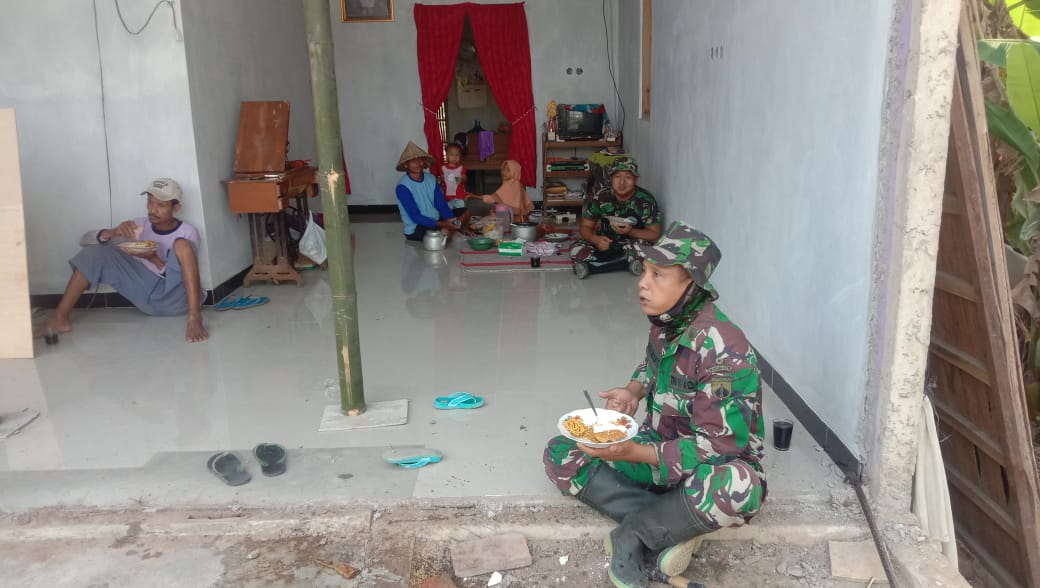 Pati – Selama pelaksanaan TMMD Reguler ke-111 Kodim 0718/Pati di lokasi bedah rumah di Desa Tamansari, Kecamatan Jaken, ada saja warga yang dengan ikhlas menyuguhkan makan baik sarapan pagi kadang makanan siang saat istirahat.(9/06/2021).
