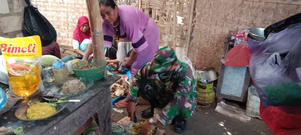 Rumah Ibu Sarmi di jadikan tempat sebagai salah satu dapur Umum bagi para satgas TMMD dan para pekerja lainnya . Saya merasa terhormat telah menunjuk rumah saya sebagai dapur untuk Kegiatan TMMD ungkap “Sarmi” Selain rumahnya cukup luas dan bersih letak rumah ibu saripah juga dekat dengan tempat yang sedang di bangun “tutur Sertu Puryono” dengan begitu pendistribusian logistik akan lebih cepat sampai tidak makan waktu lama lagi.