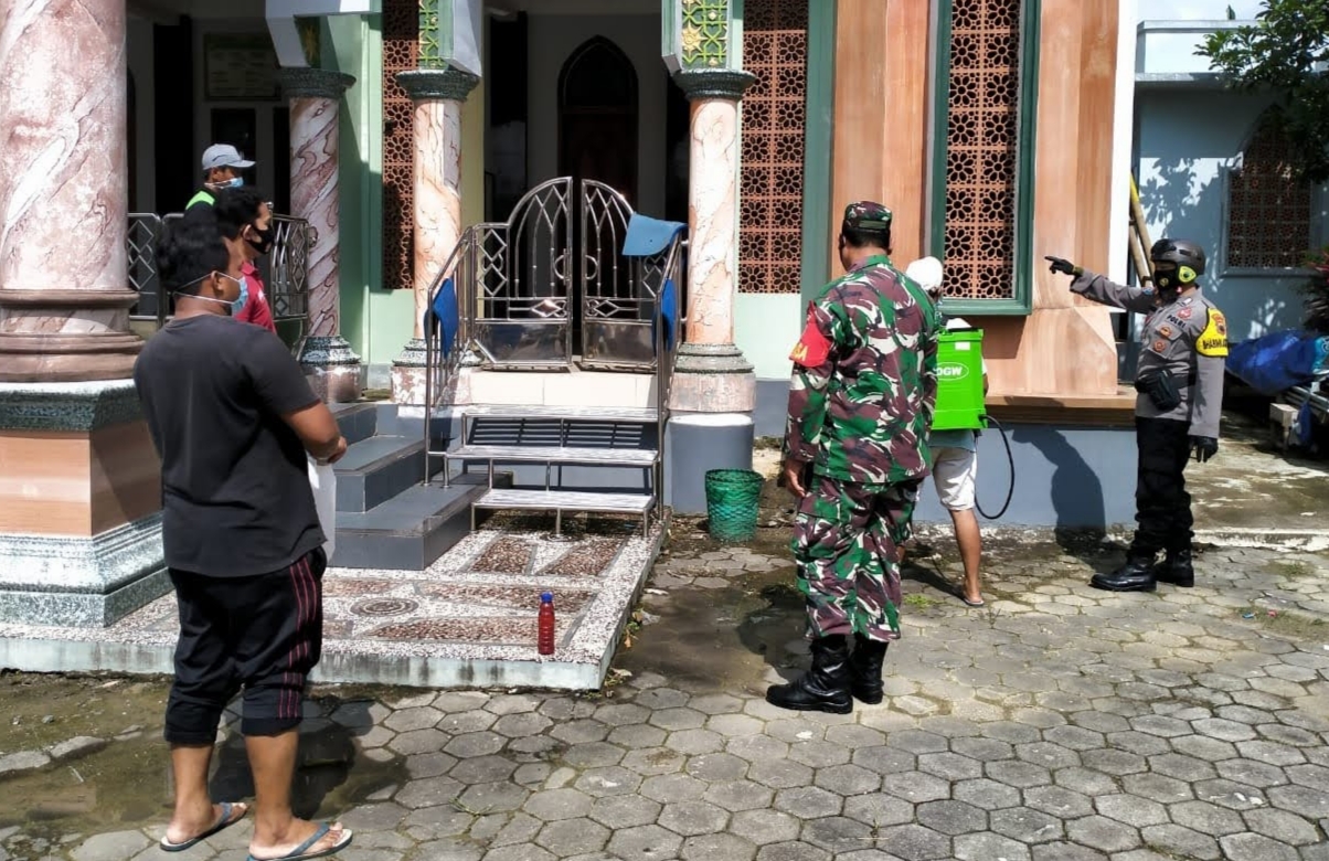 Hal tersebut juga didukung dengan penyemprotan cairan disinfektan di rumah-rumah penduduk, tempat ibadah dan tempat-tempat umum lainnya. Seperti terlihat saat ini, Babinsa dan Bhabinkamtibmas bersama warga sedang menyemprotkan air disinfektan di masjid Baitul Muttaqin Desa Tamansari.