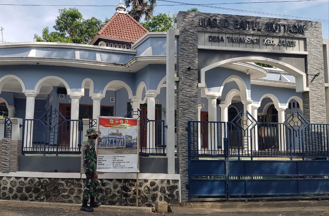 Di sampaikan Komandan SSK TMMD Reguler Kodim Pati, Kapten Kav Budi Karyadi, Masjid Baitul Muttaqin yang berada di Desa Tamansari, Kecamatan Jaken, Kabupaten Pati, adalah salah satu sasaran fisik TMMD Reguler Kodim Pati yang dilaksanakan tahun ini. Tidak butuh waktu lama kami anggota Satgas untuk menggarap dan menyenangkan renovasi rumah ibadah ini. Terbukti sebelum kegiatan TMMD ditutup, renovasi Masjid sudah rampung seratus persen.