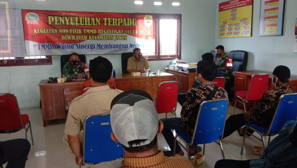 Pati – Satgas TNI Manunggal Membangun Desa (TMMD) Reguler ke 111 Kodim 0718/Pati memberikan penyuluhan tentang Bela Negara kepada sejumlah tokoh masyarakat, aparat desa, para ketua RT dan RW Desa Tamansari.