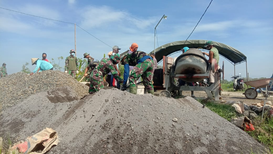 Pati – Pelaksanaan TNI Manunggal Membangun Desa (TMMD) Reguler ke-111 Kodim 0718/ Pati, di Desa Tamansari,Kecamatan Jaken, Kabupaten Pati, memang membutuhkan pemikiran tenaga extra dan kebutuhan material. Minggu (04/07/2021).
