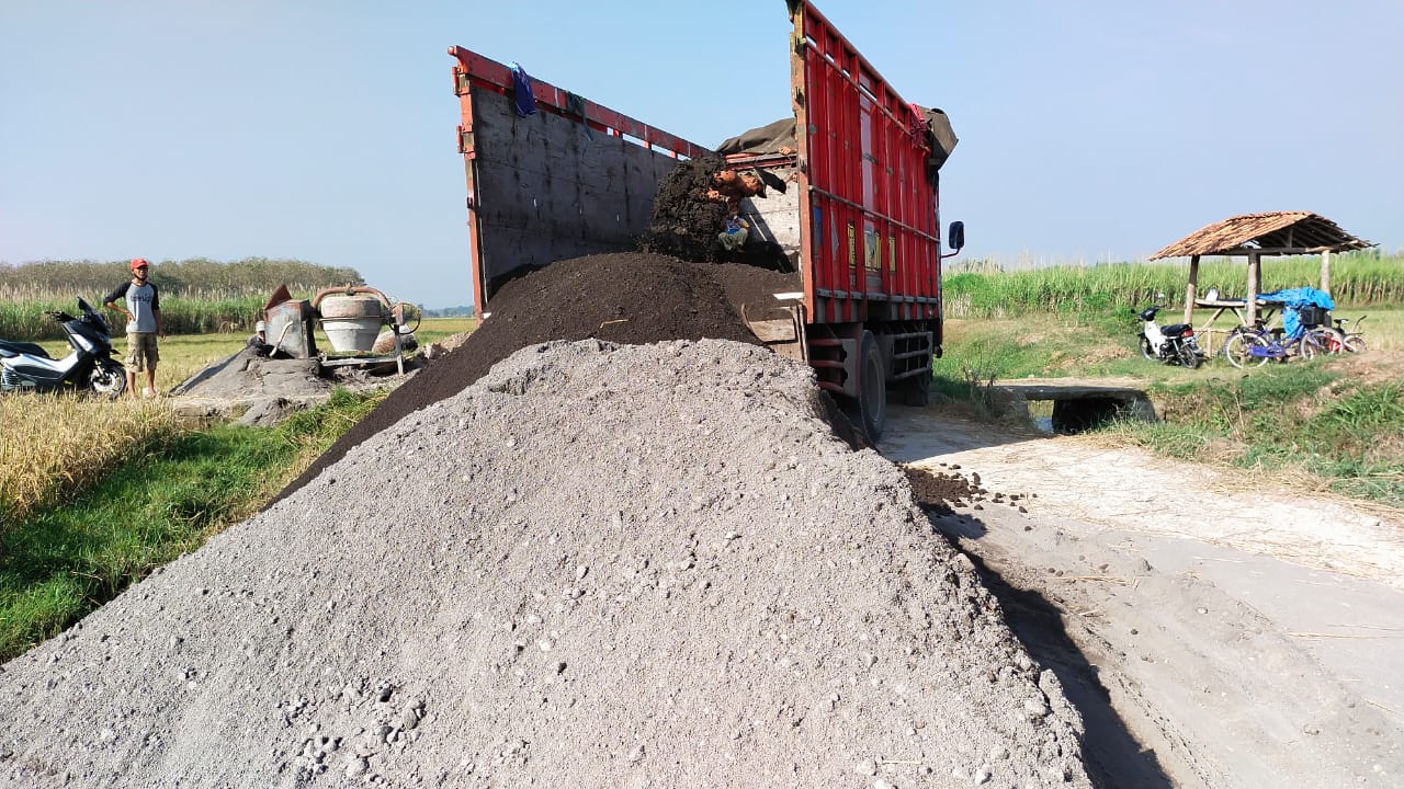 Salah satu penyiapan tersebut adalah pemyediaan material sebagai bahan pokok dalam kegiatan betonisasi jalan sepanjang 1450 meter yang tergelar di area persawahan desa Tamansari.