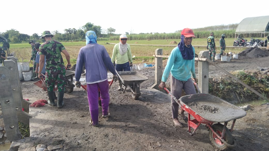 Pati – Kebersamaan antara TNI dan masyarakat di Desa Tamansari,Kecamatan Jaken, Kabupaten Pati begitu kompak memasuki hari ke-14 dalam pelaksanaan TMMD Reguler ke-111 TA.2021 Kodim 0718/ Pati. Senin (28/06/2021).