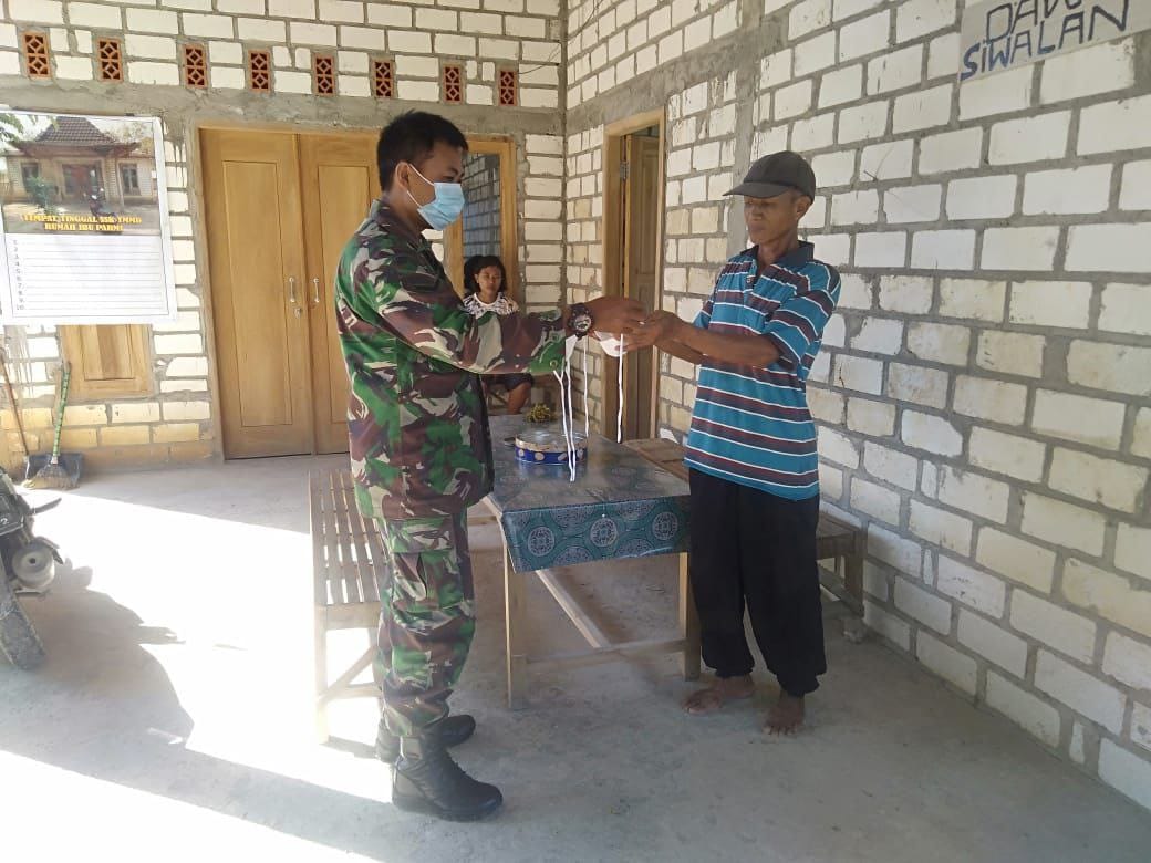 Pari – Satgas TMMD Reg Ke-111 Kodim 0718/Pati, bagikan masker pada masyarakat Desa Tamansari guna keselamatan kesehatan yang mana saat ini masih mewabahnya virus Corona/Covid-19 dengan membagikan masker diharapkan warga bisa terhindar dari virus. Disamping itu harus membiasakan dengan mencuci tangan.