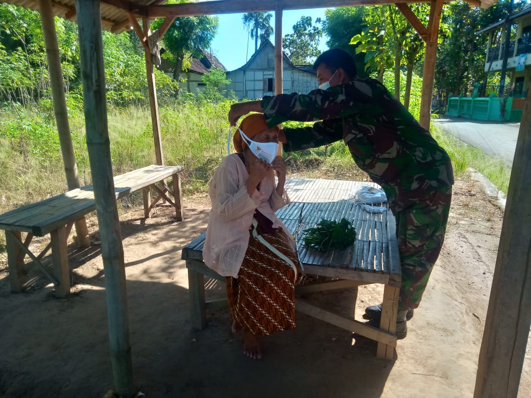 Dengan memakaikan masker Serda Subakir berujar, dan menghimbau mbah Sutini untuk memakai masker. “Ayo mbah pakai masker biar tidak sakit,”ujarnya singkat.