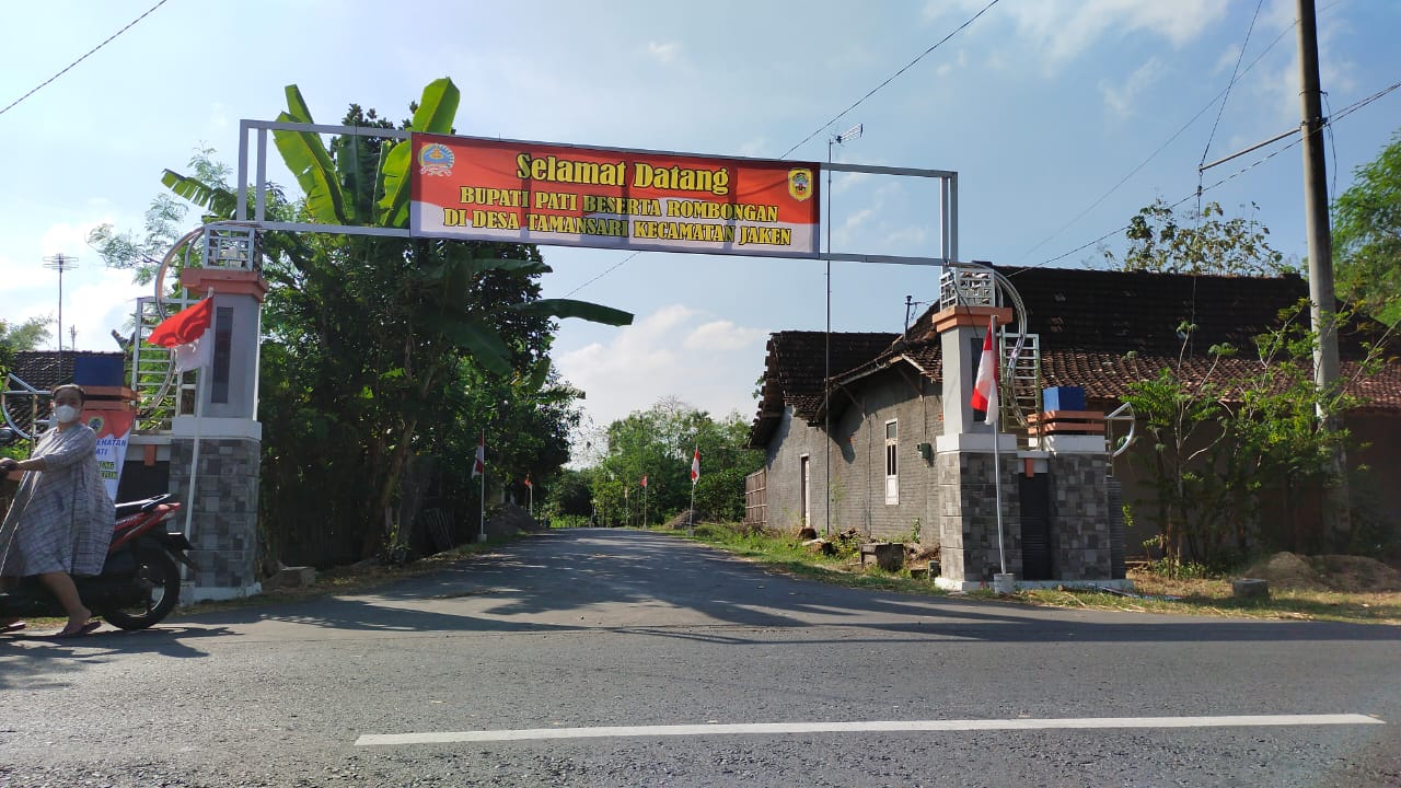 Pati-Nuansa merah putih merebak diseantero desa Tamansari kecamatan Jaken penerima program TMMD regular 111 Kodim Pati tahun 2021.