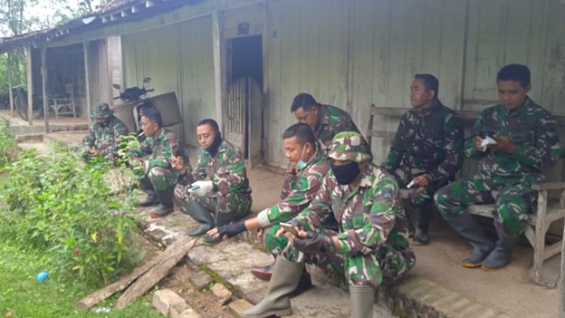 Terlihat anggota Satgas melaksanakan istirahat sambil menunggu Adzan Ashar selesai. Selesai Adzan mereka melanjutkan pekerjaan.