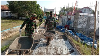 “Kita dalam hal ini Anggota Satgas TMMD beserta Masyarakat melaksanakan gotong royong dalam melakukan pengecoran jalan dengan di bantu mesin molen serta alat angkong sebagai sarana penunjang untuk pengangkutan material dan adukaan molen,”ujar Puryono”.
