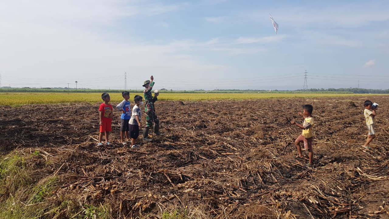 Praka Rusmadi yang melihat anak-anak bersedih kemudian menghibur mereka dengan mengajak bermain layang-layang, yang kebetulan dibawa oleh salah satu anak tersebut saat menghampiri rumah tempat tinggal anggota satgas selama pelaksanan TMMD.