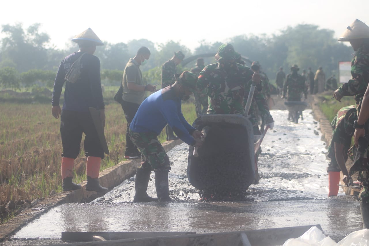 Betonisasi kjalan sepanjang 1450 meter dalam program TMMD regular 111 Kodim Pati ini bukan ukuran yang pendek, namun ini ukuran yang cukup panjang karena dikaitkan dengan sostem pekerjaan yang dilaksanakan secara manual dan bergotong-royong.