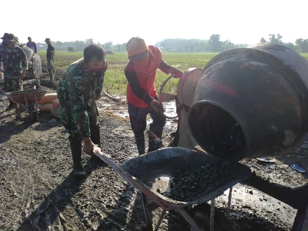 Banyak sekali terlihat dilokasi anggota TNI yang tergabung dalam satuan tugas TMMD untuk pembangunan jalan bagi masyarakat, oleh karenanya dalam pembanguan tersebut warga dengan suka rela ikut berpartisipasi dalam pembangunan.