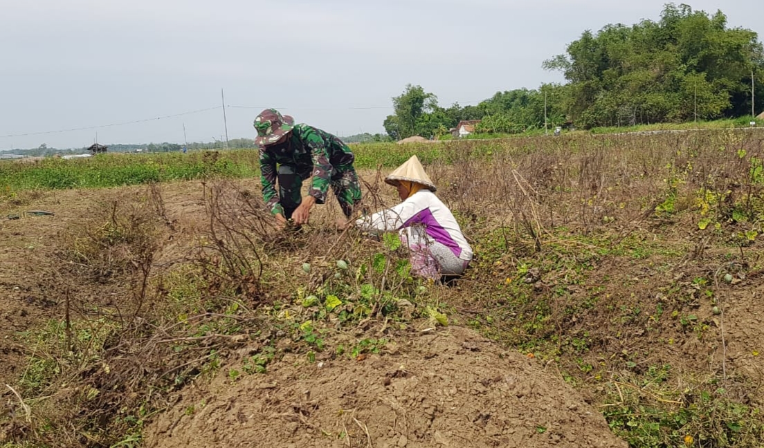 Seperti terlihat saat ini, Serda Sukarji sedang membantu Ibu Ngasipah (57) warga Dukuh Kemiri, Desa Tamansari, Kecamatan Jaken Kabupaten Pati, yang sedang membersihkan kebun miliknya dari tumbuhan rumput liar.