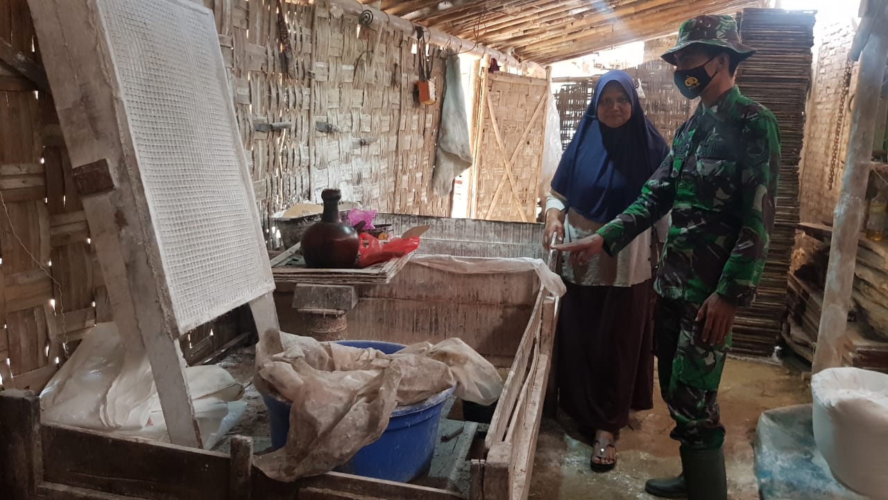 Pati – Ditengah sibuknya pekerjaan TMMD reguler ke 111 Kodim 0718/Pati, anggota satgas disela istirahatnya selalu menyempatkan diri untuk jalin keakraban dengan masyarakat sekitar. Salah satunya seperti yang dilakukan Serda Ahmad yang bersilaturahmi ke rumah warga yang mempunyai usaha kerupuk berbahan tepung pati singkong. Dewasa ini sudah sangat jarang kita temui kerupuk yang berbahan pati singkong, biasanya aneka kerupuk yang kita jumpai sudah berbahan terpung terigu bercampur tepung tapioka. Jum’at 25/06/2021)