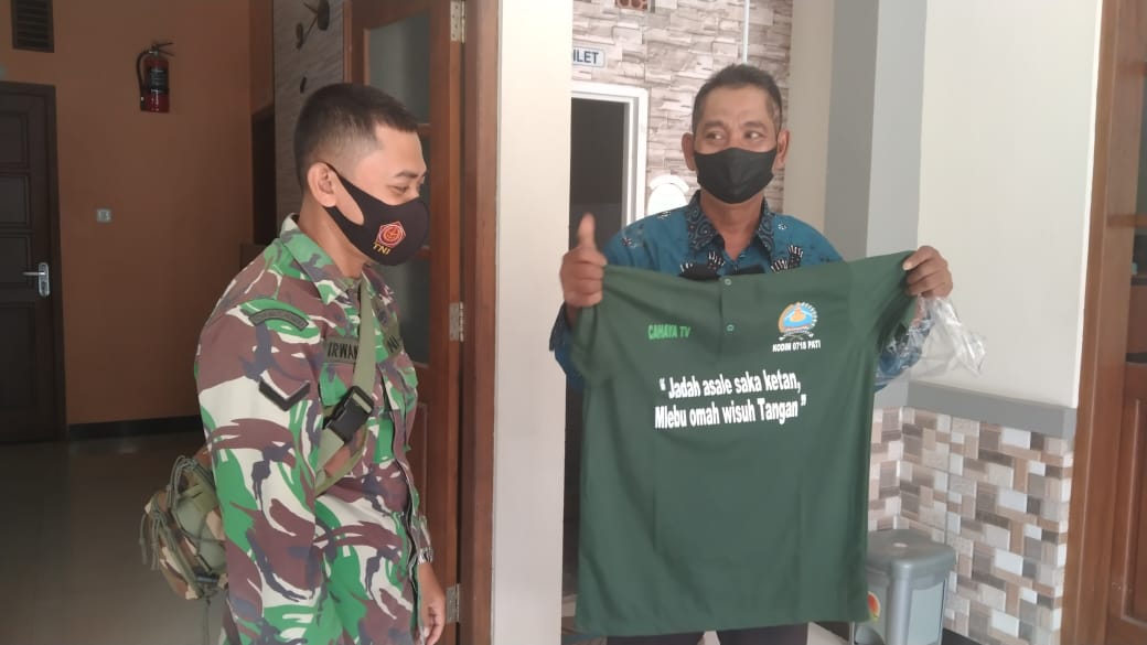 Seperti dikemukakan Rosman Hadi (57), warga Desa Tamansari RT 02/ RW 02, Kecamatan Jaken, salah satu warga yang rumahnya ditempati pasukan. Dia mengatakan, , mendapat Kenang – kenagan baju kaos loreng yang diberikan oleh Serda Yayan yang selama ini bekerja sehari-hari di lokasi TMMD. Sabtu (17/07/2021).