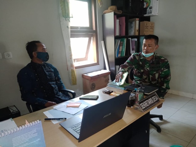 PATI – Pasiter Kodim 0718/Pati Kapten Inf Kusmiarto terus lakukan koordinasi dalam kegiatan TMMD Reguler ke-111 Kodim 0718/Pati dengan Perangkat Desa Tamansari, Kecamatan Jaken, Kabupaten Pati.