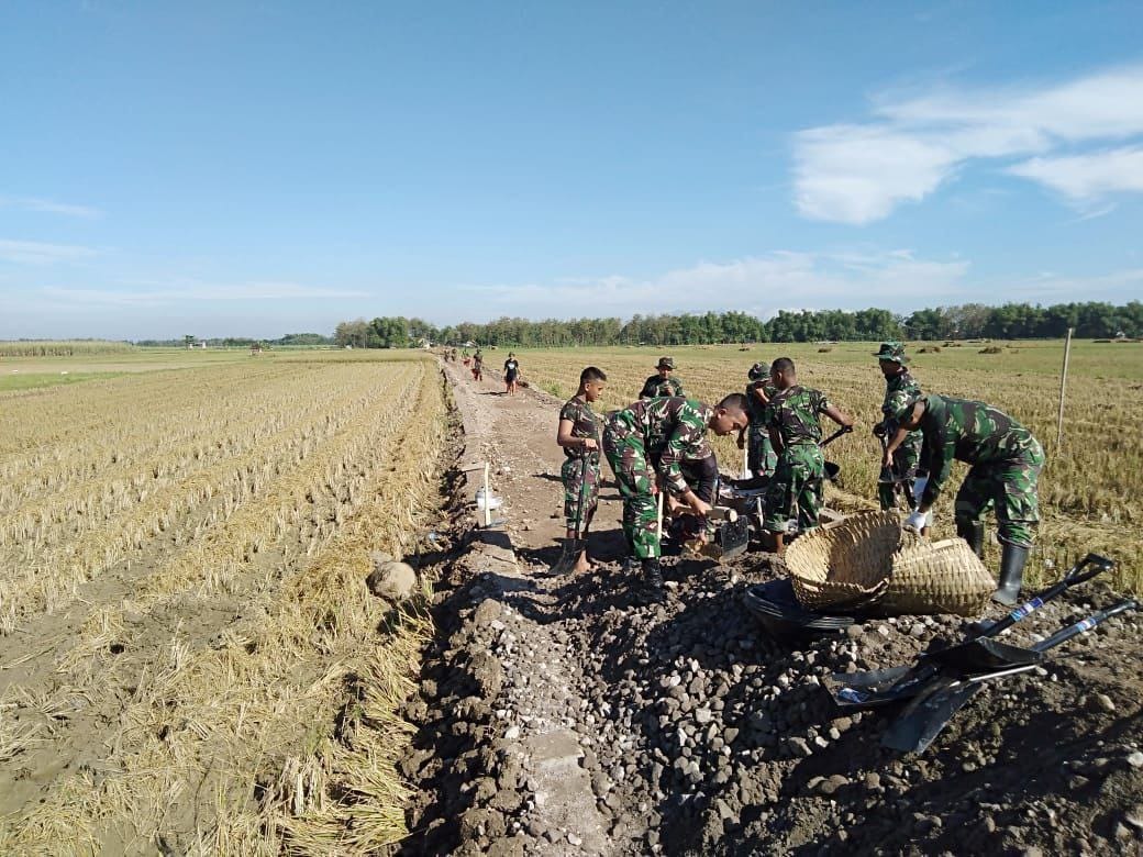 Pati – Selain melanjutkan pengecoran jalan, TNI Manunggal Membangun Desa (TMMD) reguler ke 111 Kodim 0718/Pati, sejumlah anggota satgas dan Warga Desa Tamansari, Kecamatan Jaken, Kabupaten Pati, Jawa Tengah. melakukan pekerjaan persiapan di titik pembangunan jalan yang akan dicor lanjutan.