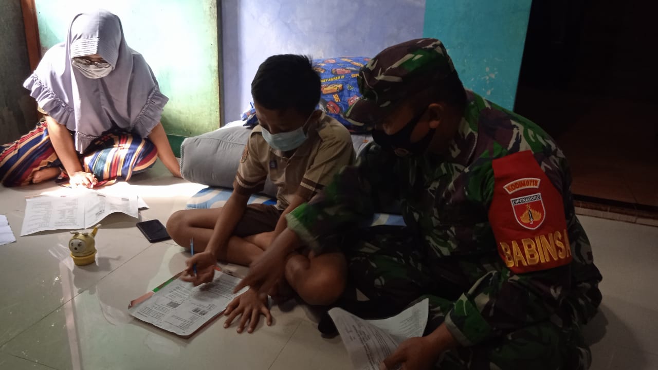 Melihat hal tersebut salah satu anggota satgas TMMD Reguler 111 kodim Pati sertu Suharsono membantu salah satu anak yang mengalami kesulitan akses internet.Selasa,(15/06/2021).