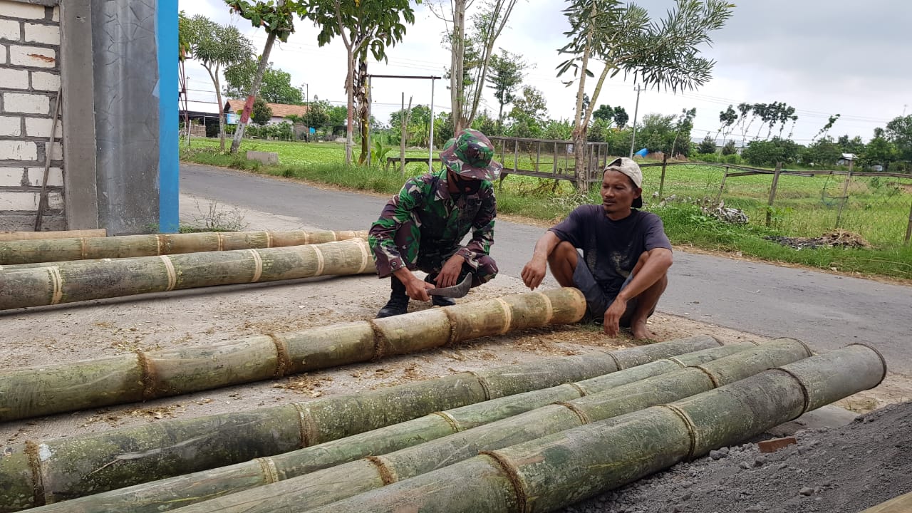 Saat selepas bekerja Serda Muslimin yang tergabung anggota satgasTMMD 111 Kodim Pati, mengunjungi Karyo (45) warga Dukuh Kalimati, Desa Tamansari yang sedang menghaluskan bambu untuk membuat kerajinan gazebo. Sambil memegang batang bambu terjadilah obrolan ringan, jika usaha yang ditekuni baru berjalan dua tahun. Jum’at (25/06/2021)