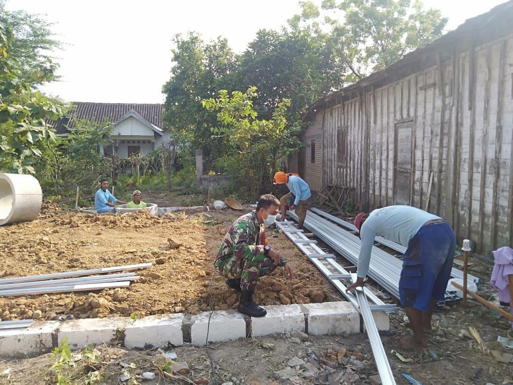 “Kami sedang membantu memasang baja ringan di rumah Ibu Sripi,” kata Serda Muslimin.