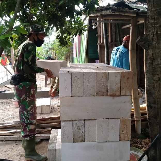 PATI: Dinilai sangat praktis, TNI sengaja memilih bata hebel untuk membuat dinding rumah warga yang direhab dalam gelaran TMMD Reguler ke-111 Kodim 0718/ Pati, Desa tamansari, Kecamatan jaken, Kabupaten Pati, Jawa Tengah.