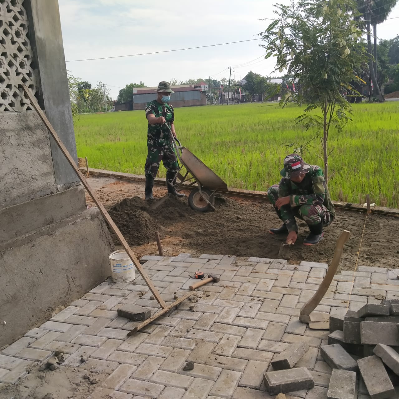 Cerahnya matahari terlihat menemani kegiatan anggota satgas TNI yang sedang melakukan aktifitasnya di halaman masjid Baitul Muttaqin Desa Tamansari.