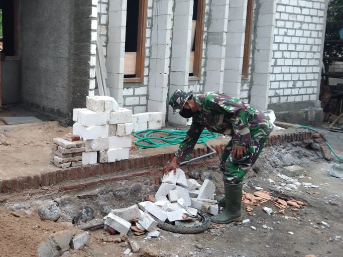 Kopda Pujianto anggota Satgas TMMD 111 membantu memindahkan bahan material berupa batu bata putih yang akan digunakan untuk membangun rumah agar lebih dekat dalam pengambilan untuk di susun dilokasi rumah yang direhab,Memang tidak ringan membawa bata putih dengan beban menggunakan tenaga manual yang harus di langsir ke dalam rumah yang siap disusun batu putih, ini sangat membutuhkan tenaga ekstra dan kekuatan tangan yang cukup kuat untuk menjaga keseimbangan .