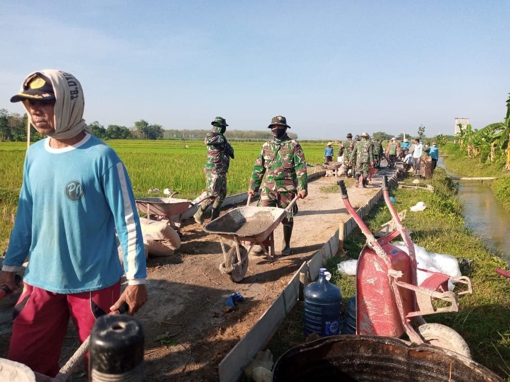 Pelda Marzuki, bersama warga melaksanakan kegiatan kerja bakti pembuatan jalan Beton di Desa Tamansari Kecamatan Jaken kabupaten Pati.