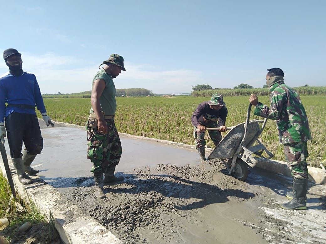 Salah satu sasaran fisik TMMD Reguler ke 111 Kodim 0718/Pati, targetnya cukup besar yakni pengecoran yang jalan sepanjang 1450 meter dengan lebar 2,6 meter, yang sudah hampir selesai pencapaian 97persen berkat kerja sama antara anggota satgas dan warga Desa Tamansari, Jum’at 09/07/2021 (Pendim).