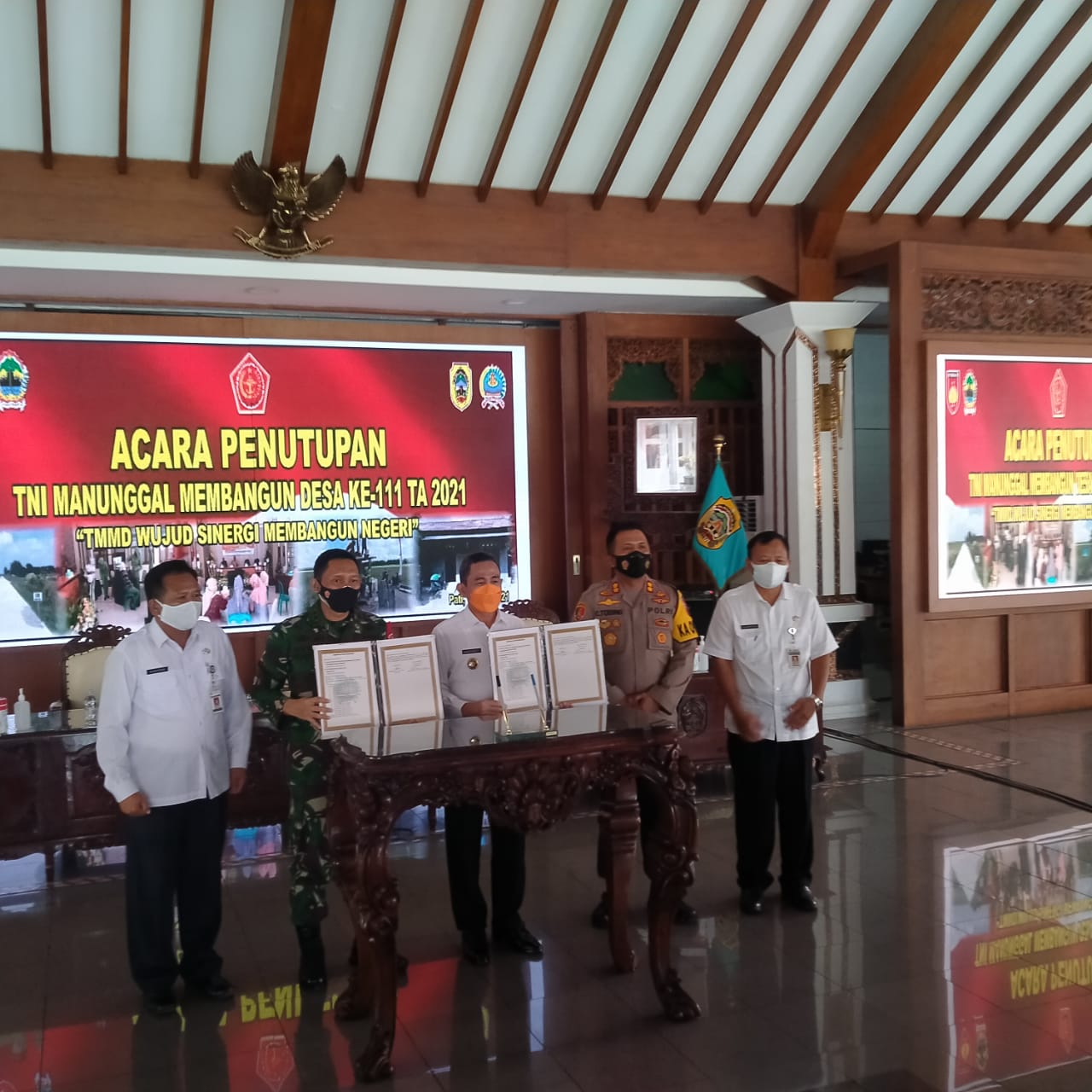 Berada di pendopo Kabupaten Pati acara penanda tangangan serah terima itu dilakukan. Komandan Kodim 0718/Pati, Letnan kolonel Czi Adi Ilham Zamani dan Bupati Pati, Haryanto melaksanakan Penanda tanganan. Kemudian dilanjutkan dengan serah terima laporan hasil pembangunan.