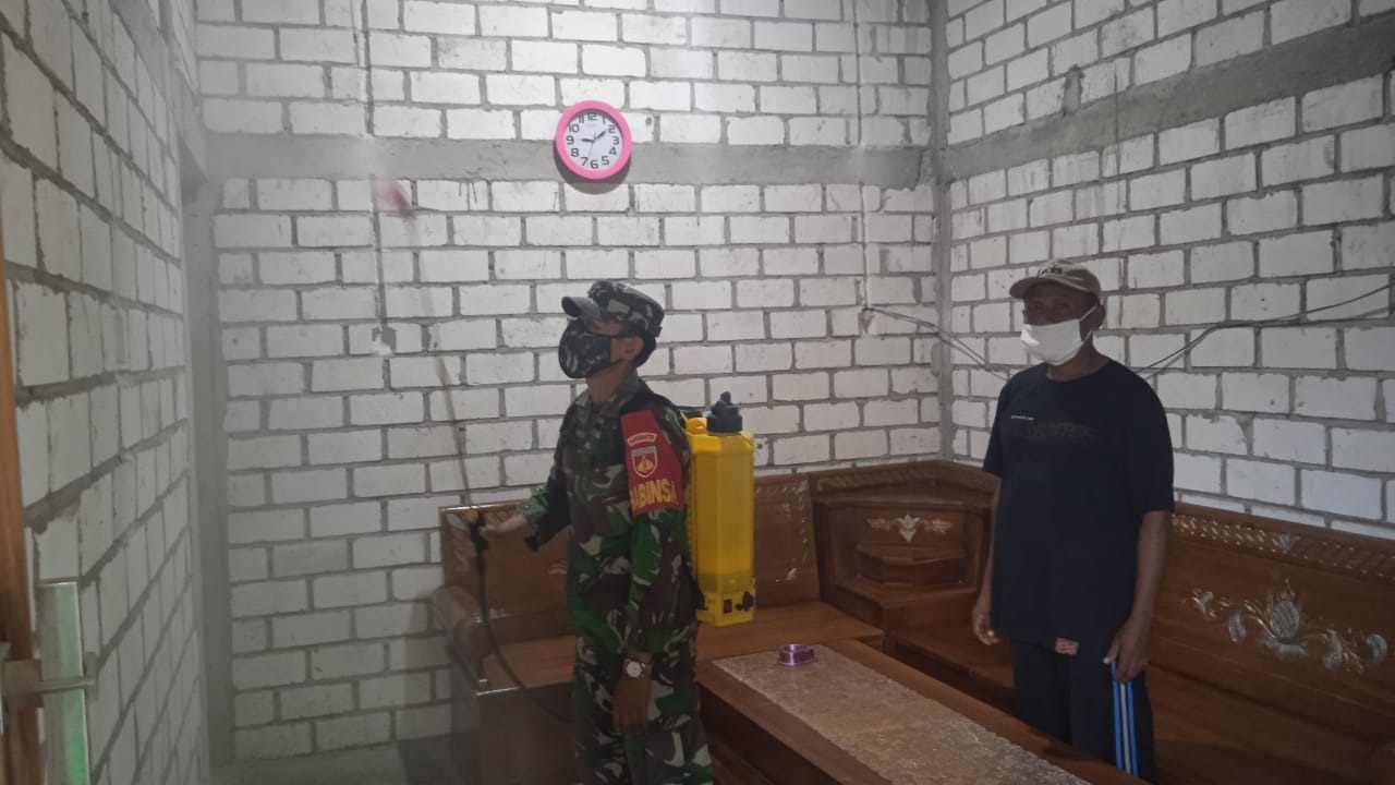 Babinsa berserta warga menyiapkan tempat bagi para anggota Bawah Kendali Operasi (BKO) yang berjumlah 90 Personil .Selain menyediakan tempat juga melaksanakan pembersihan dan melakukan penyemprotan Disinfektan untuk menetralisasi tempat dari keberadaan Virus Covid 19. Memang perlu perhatian dan kehatian khusus karena virus covid 19 telah menyebar ke semua penjuru wilayah di samping di tuntut untuk sukses dalam pelaksanaan TMMD juga harus bisa menghindar dari Virus Covid 19 pada dasarnya kita tidak boleh lengah di saat melaksanakan tugas di lapangan.