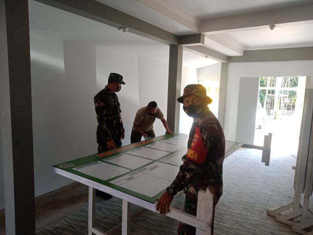 Tampak anggota Satgas TMMD mempersiapkan posko TMMD untuk pembuakaan TMMD Reguler ke-111 tahun 2021 Kodim 0718/Pati.