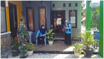 Dengan lonjakan jumlah penduduk yang semakin banyak terpapar Virus Covid 19 dan lebih prihatin lagi dengan jumlah kematian karena covid 19 sangat tinggi yang sudah mendekati angka Ribuan Ibu Bidan dan Ketua Penggerak PKK didampingi Babinsa Melaksanakan Penyuluhan serta himbauan kepada warga tentang pentingnya melaksanakan Protokol Kesehatan untuk mengurangi resiko Tertular Virus Covid 19 “tutur Sertu Toha Untoro “ sekaligus member semangat bagi warga yang baru melaksanakan Isolasi Mandiri.
