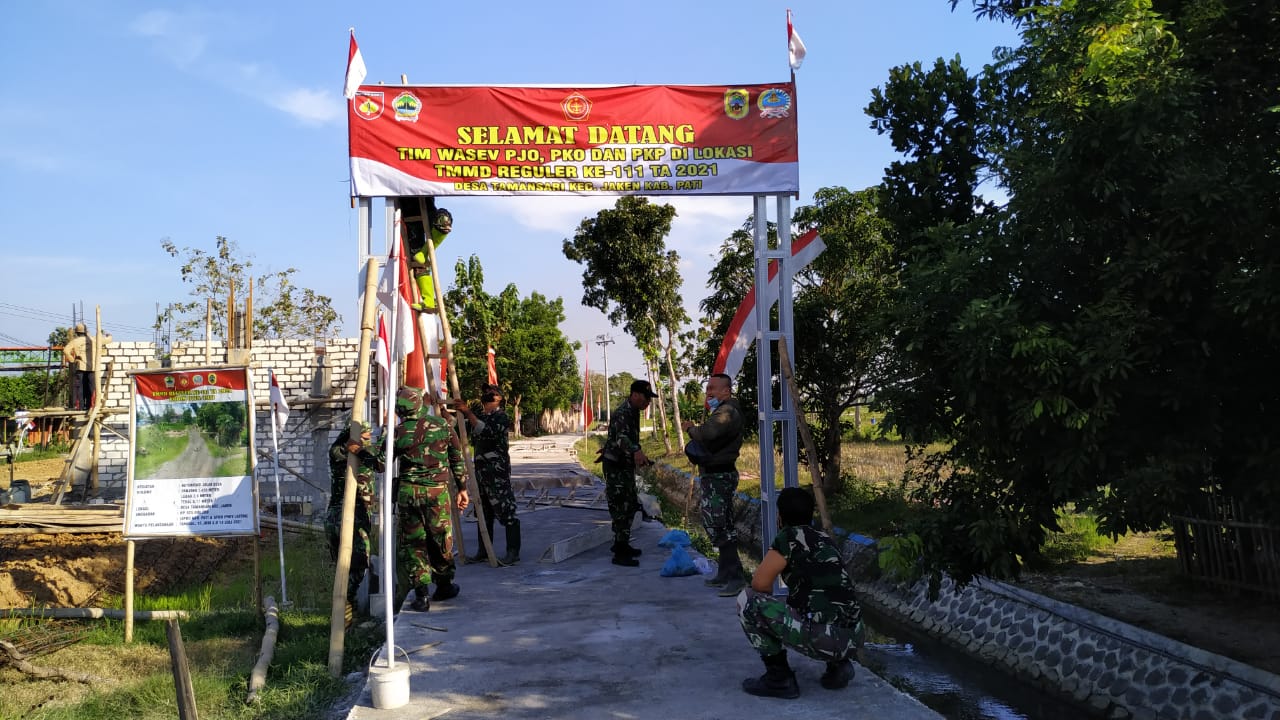 Diketahui dalam rangka menyambut kunjungan Tim Wasev PJO TMMD Reguler 111 Kodim 0718/Pati di Desa Tamansari, Kecamatan Jaken, Kabupaten Pati, berbagai persiapan dilakukan oleh sejumlah anggota Satgas bersama warga masyarakat.