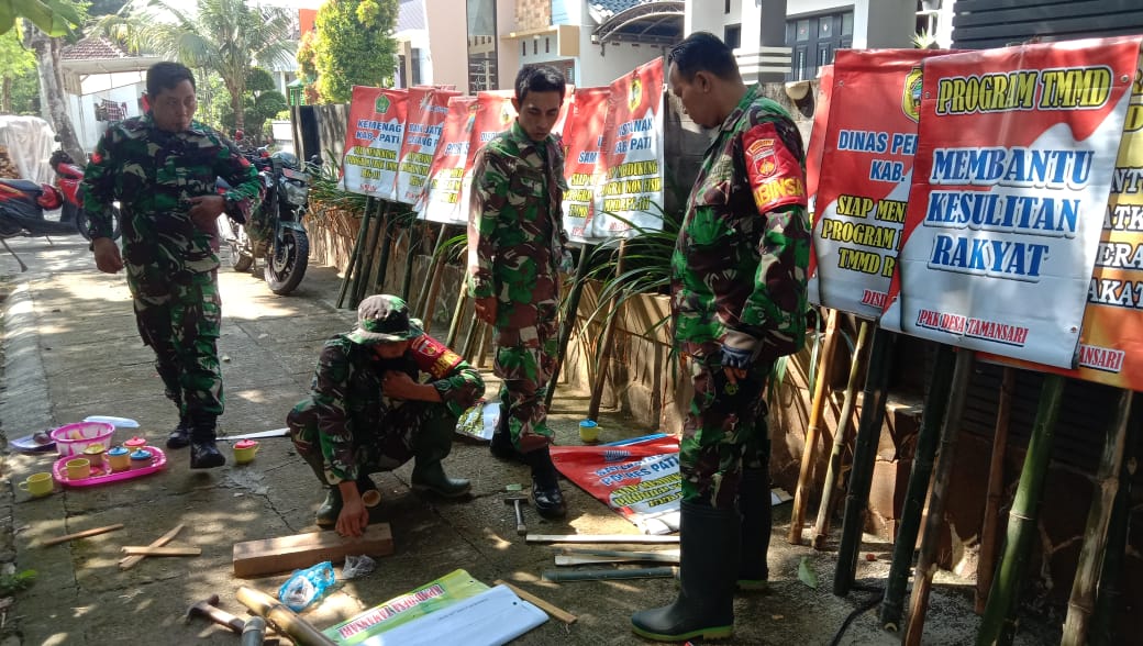 Pati – Sejumlah personil dari Koramil 16/Jaken terus melakukan persiapan jelang pelaksanaan TNI Manunggal Membangun Desa (TMMD) Reguler ke 111 Kodim 0718/Pati di Desa Tamansari, Kecamatan Jaken, Kabupaten Pati, Jawa Tengah. Rencananya secara resmi TMMD akan dilaksanakan Selasa (15/06/2021) mendatang.