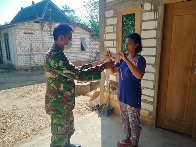 Tak hanya sosialisasi dan himbauan, bahkan personel Pra TMMD ke-111 Kodim 0718/Pati, juga membagikan masker secara gratis kepada warga Desa Tamansari yanag masih belum mengunakan masker. Jumat (11/06/2021).