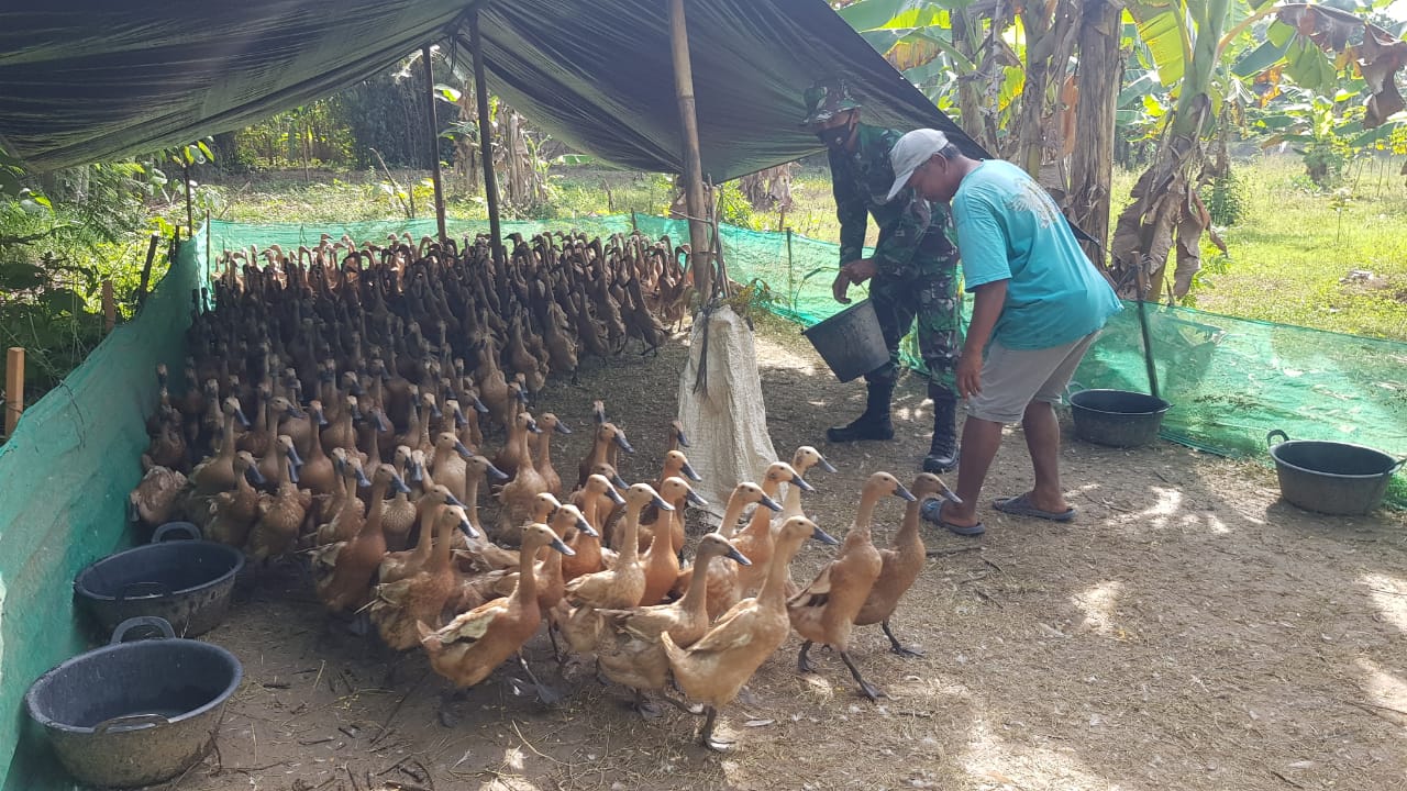 Pati – Desa Tamansari, Kecamatan Jaken, Kabupaten Pati telah selesai dilaksanakan TMMD Reguler ke-111 Kodim 0718/Pati dimana daerah tersebut sangat berpotensi sekali dijadikan tempat untuk berternak bebek petelur. Karena di Desa Tamansari, Kecamatan Jaken, masih memiliki lahan yang sangat luas serta iklim yg sangat cocok dengan peternak bebek petelur, Jum’at (16/7/2021).