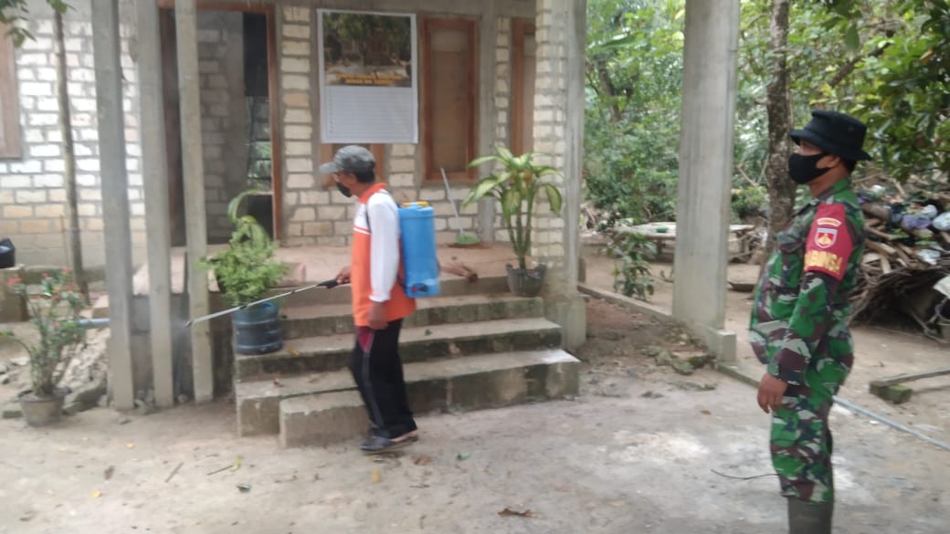 Sertu Joni Iskandar Bersama masyarakat dan anggota Satgas TMMD kodim 0718/Pati. Kegiatan mengadakan Penyemprotan Disinfektan dengan sasaran Rumah yasmini (60) Rt 04/02 Desa Tamansari yang di jadikan posko TMMD Penyemprotan di harapkan kondisi rumah dalam keadaan bersih dan steril bebas virus pandemi Covid-19,”ujar sertu mursidi