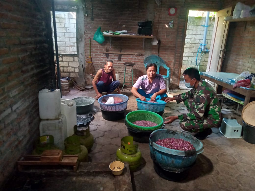 Disela waktu istirahat siang salah satu satgas TMMD menyambangi tempat tersebut menyaksikan sendiri proses pengolahan bawang goring yang akan disetorkan di pasar-pasar tradisional diwilayah Pati dan rembang.Senin,(14/06/2021).