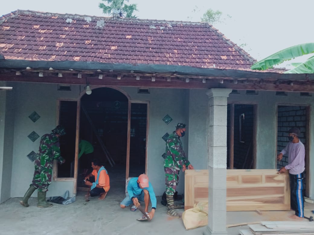 Pati – Satuan tugas (Satgas) TNI Manunggal Membangun Desa (TMMD) Reguler ke 111 Kodim 0718/Pati terus mempercepat pengerjaan bedah rumah yang disebut juga dengan rehab Rumah Tangga Layak Huni (RTLH). Walaupun baru mendekati minggu kedua pelaksanaan TMMD, Satgas yang membedah rumah milik Sukandar (60) warga tidak mampu di Desa Tamansari, Kecamatan Jaken, Kabupaten Pati.