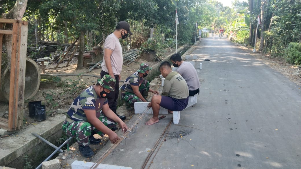 Pati – Tidak hanya di pembangunan jalan, polisi dari Polsek Jaken juga ikut aktif bantu di rehab RTLH yang masih menjadi satu bagian dari pelaksanaan TMMD Reguler ke-111 Kodim 0718/ Pati, di Desa Tamansari,Kecamatan Jaken, Kabupaten Pati. Kamis (24/06/2021).