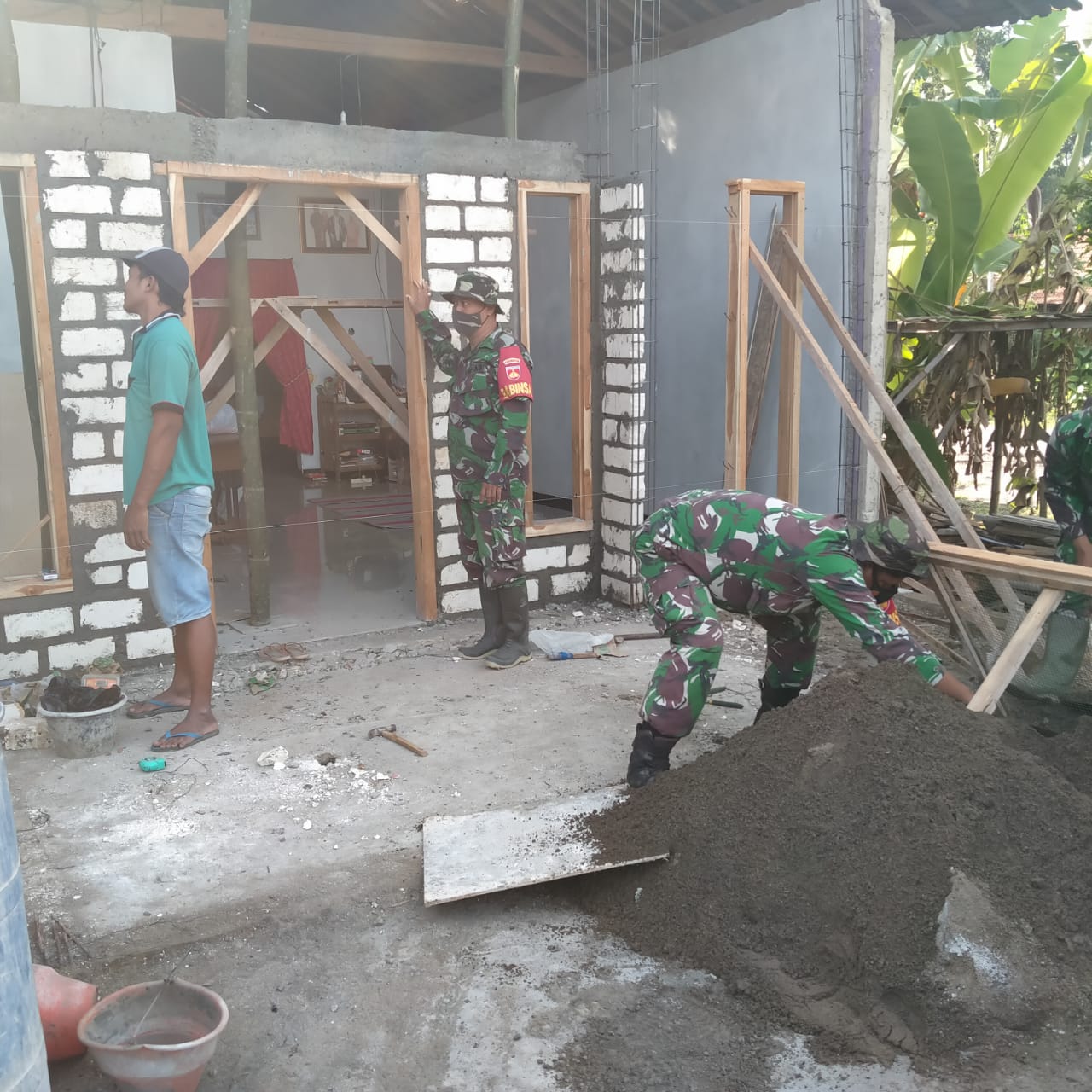 Meski matahari terik bersinar menyengat kulit, bagi prajurit TNI bukan suatu halangan untuk mengerjakan rehab RTLH milik warga kurang mampu tersebut.