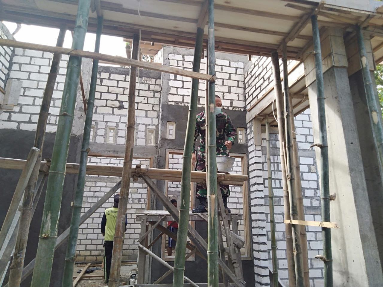 Pati – Sertu Nur Hasan, salah satu anggota satgas TMMD 111 yang ditunjuk menangani rehabilitasi RTLH rumah Ibu Sripi (41) warga Dusun Kemiri Rt.04/Rw.02 Desa Tamansari Kecamatan Jaken kabupaten Pati, Senin 12/07/2021.