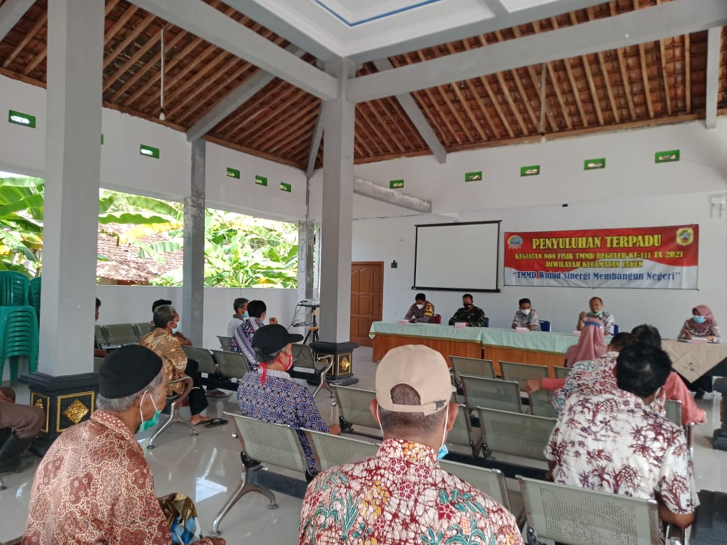 Kegiatan penyuluhan tersebut merupakan bagian dari TMMD Reguler ke 111 sasaran non fisik, dihadiri Kepala Desa Tamansari Gus Amin, Danramil 16/Jaken Kapten Kav Budi Karyadi, S.E, Babinsa Desa Tamansari Sertu M. Jamroni beserta warga desa setempat.