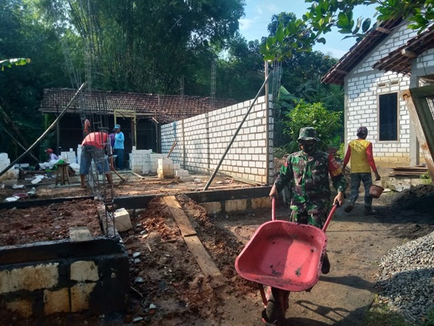 Pati – Perbaikan Rumah Tidak Layak Huni (RTLH) pada program sasaran TMMD Reguler ke- 111 Kodim 0718/Pati terus berlangsung salah satunya milik Parjo (52) yang saat ini pengerjaannya sudah mencapai 20 persen. Kamis (10/06/2021).