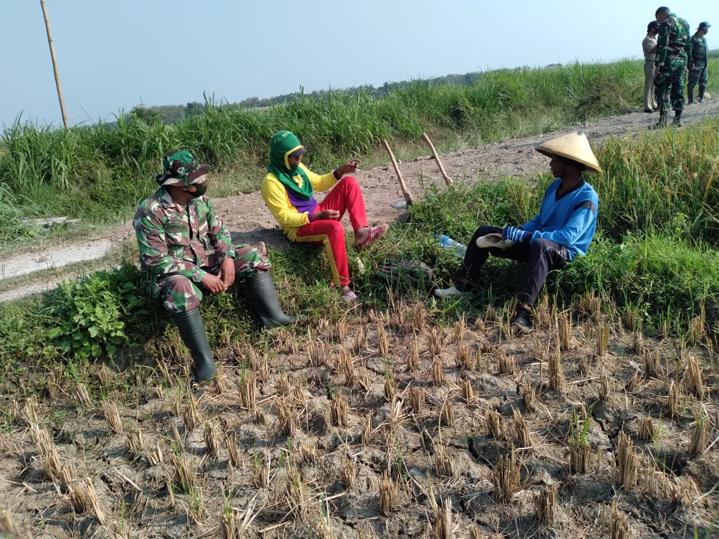 Pati – Istirahat sejenak disela pekerjaan dimanfaatkan warga dengan satgas pra TMMD reguler 111 Kodim 0718/Pati ngobrol bareng, sambil menikmati snack dan minum yang tersedia dilokasi sasaran pekerjaan, Rabu (09/06/2021)