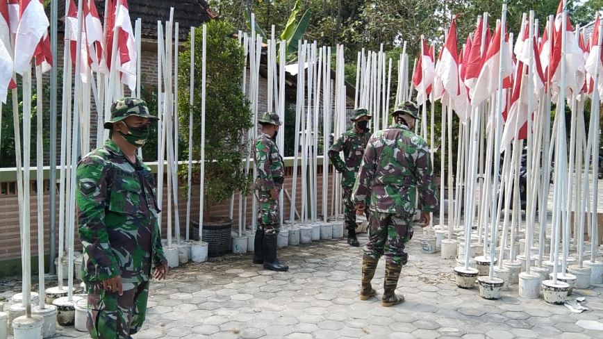 Pemasangan Bendera Merah Putih dan umbul-umbul itu dilakukan TNI dan warga setempat untuk menyambut pembukaan program TNI Manunggal Membangun Desa (TMMD) Reguler ke-111 yang akan berlangsung besok, Selasa (15 Juni 2021).