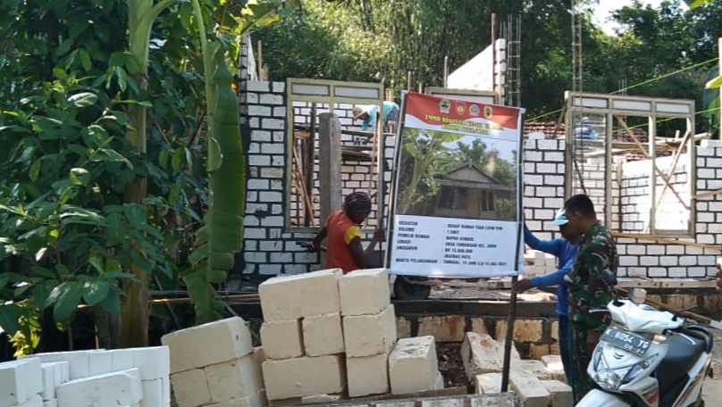 Pati – Pembangunan 16 unit RTLH bagi warga kurang mampu merupakan salah satu kegiatan fisik program TMMD (TNI Manunggal Membangun Desa) Reguler Ke-111 Kodim 0718/Pati di Desa Tamansari, Kecamatan Jaken, Kabupaten Pati. Pekerjaan pembangunan RTLH (Rumah Tidak Layak Huni) telah dimulai sejak Pra TMMD, dengan pemasangan dinding rumah dari concrete block atau batako.